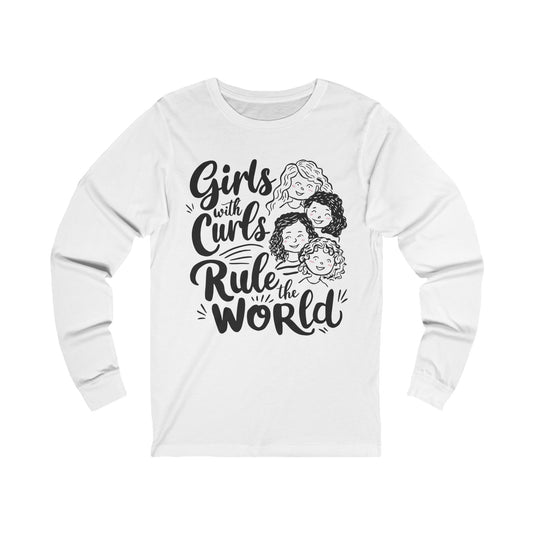 Girls with Curls Rule the World | Unisex Jersey Long Sleeve Tee | Curly Hair | Fun | New Design | 2024 | Sassy | Girl | Super | Summer