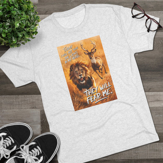 Fearless Pursuit - Lions Fear Me | Unisex Tri-Blend Crew Tee | No Fear | New | 2024 | Summer | Gift | Birthday Gift | Courage | Bold