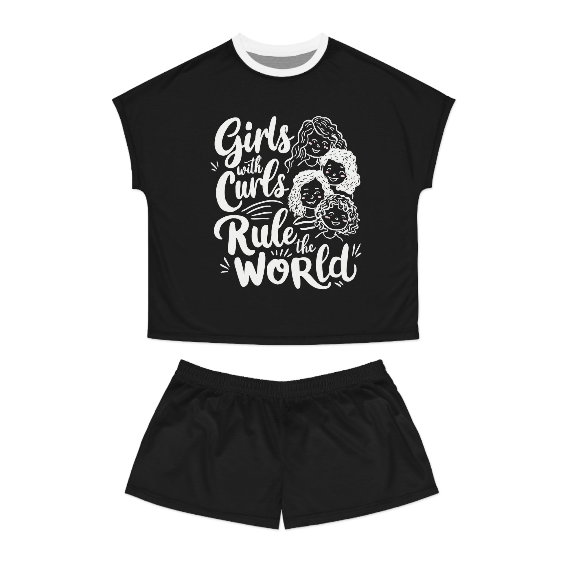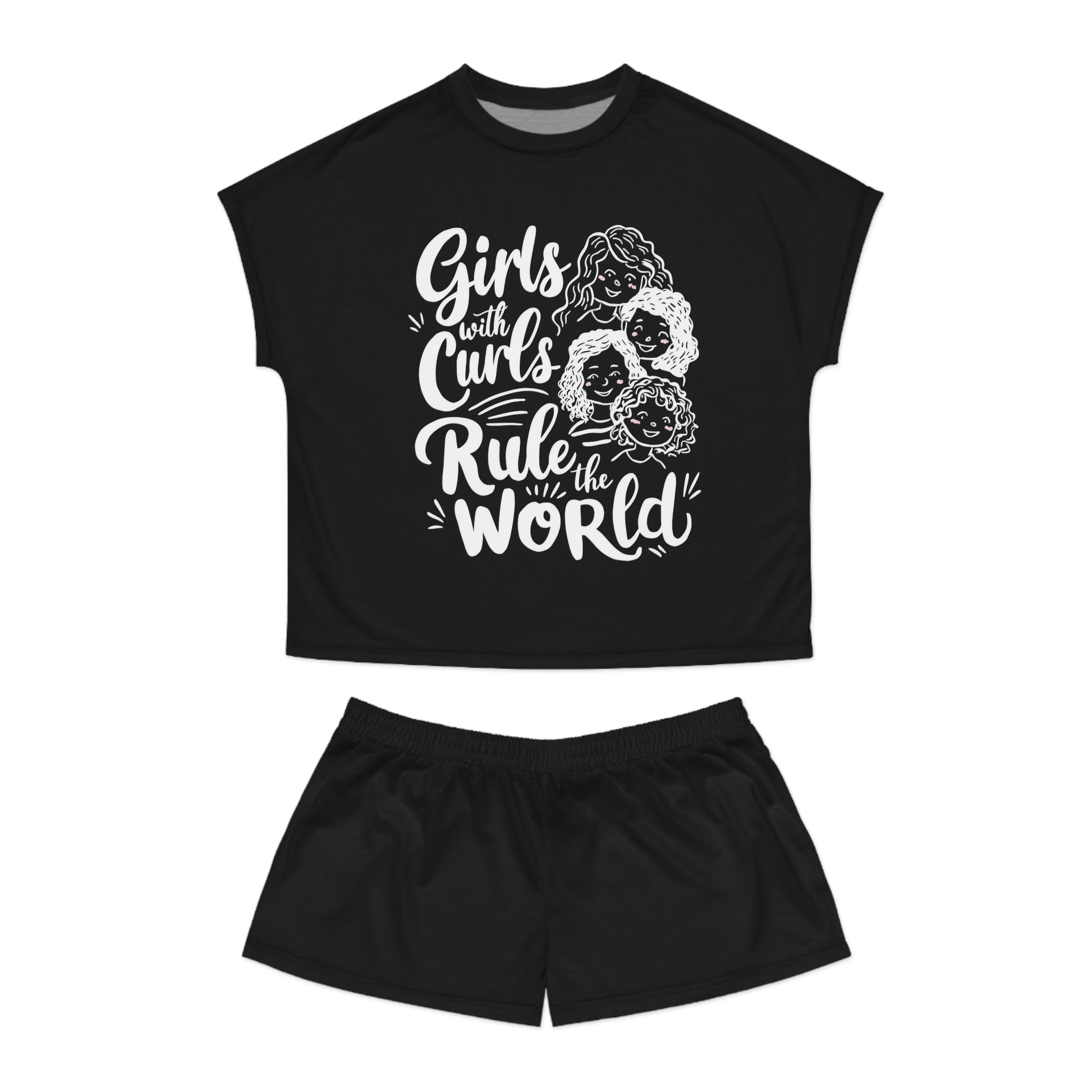 Girls with Curls Rule the World | Women's Short Pajama Set | Curly Hair | Fun | New Design | 2024 | Sassy | Girl | Super | Summer | Funny