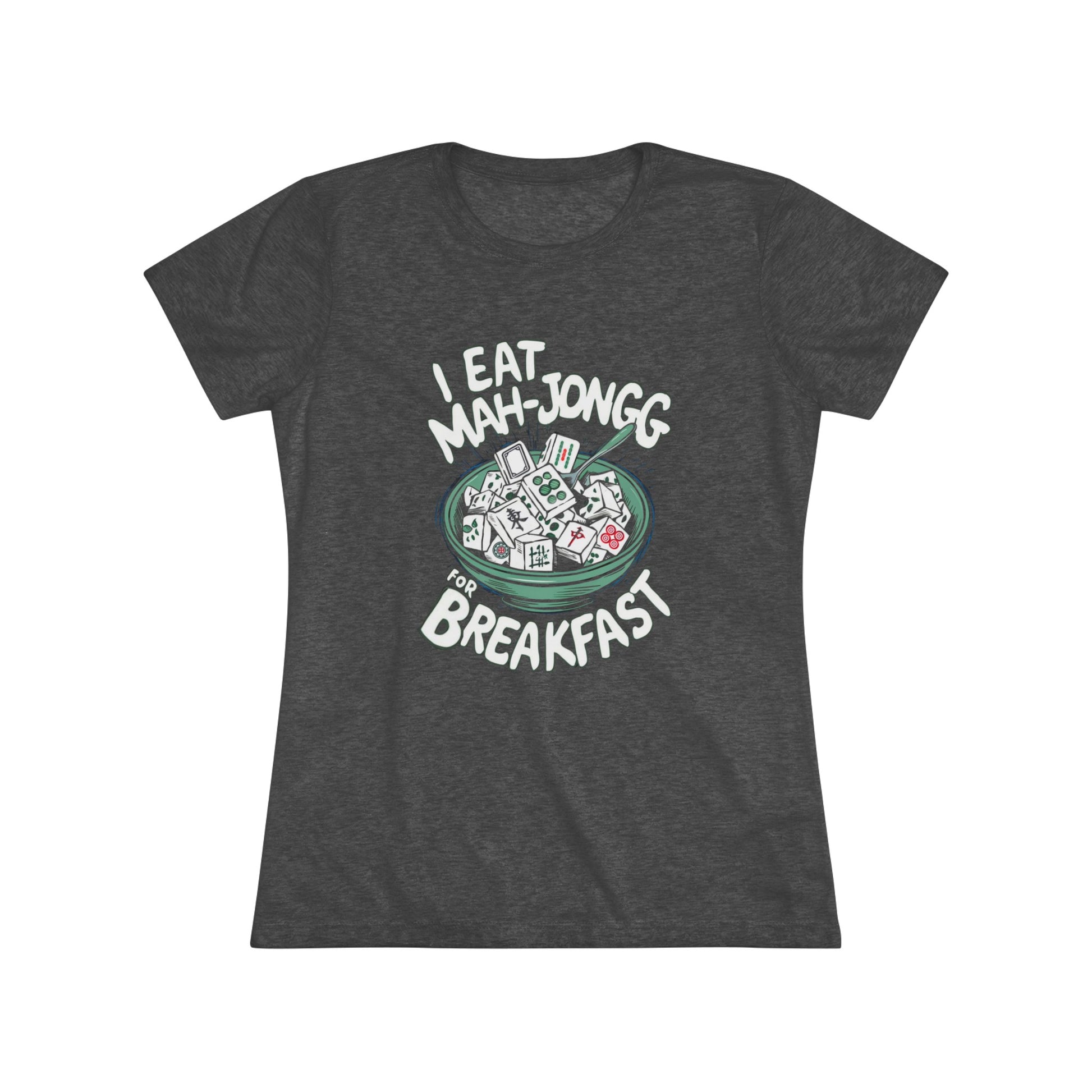 Ditch the donuts and deal the tiles! This is your breakfast battle cry for all mahjong mavens who conquer the table before noon. Forget cereal flakes and lame fruity loops - real champions fortify themselves with the strategic smarts that come from demolishing opponents and collecting winning hands! So, rise and shine, tile warriors! Let the world know you're here to conquer, one delicious dumpling and devastating discard at a time! This cozy and perfect fit t-shirt is a triple fabric blend that is incredibly soft with great drape, stretch, and recovery. Made of polyester, combed ring-spun cotton and rayon, it is not only a cozy beauty but also made to last. Get the perfect basic with a vintage look. .: 50% polyester, 25% combed ringspun cotton, 25% rayon .: Light fabric (4.3 oz/yd² (145 g/m²)) .: Sewn in label .: Slim fit