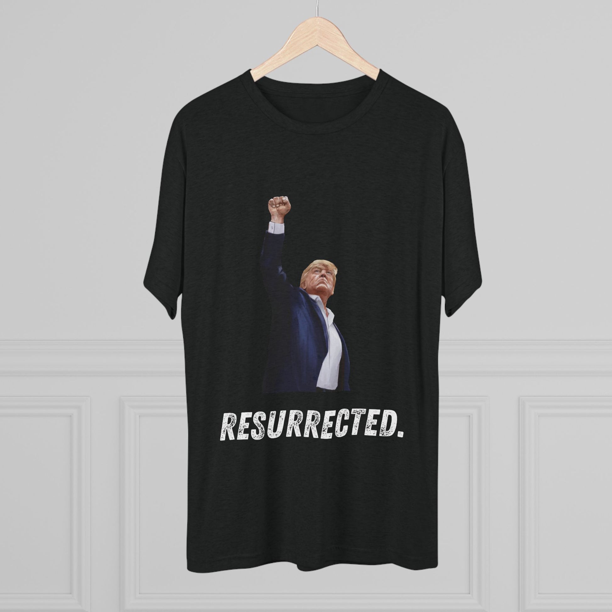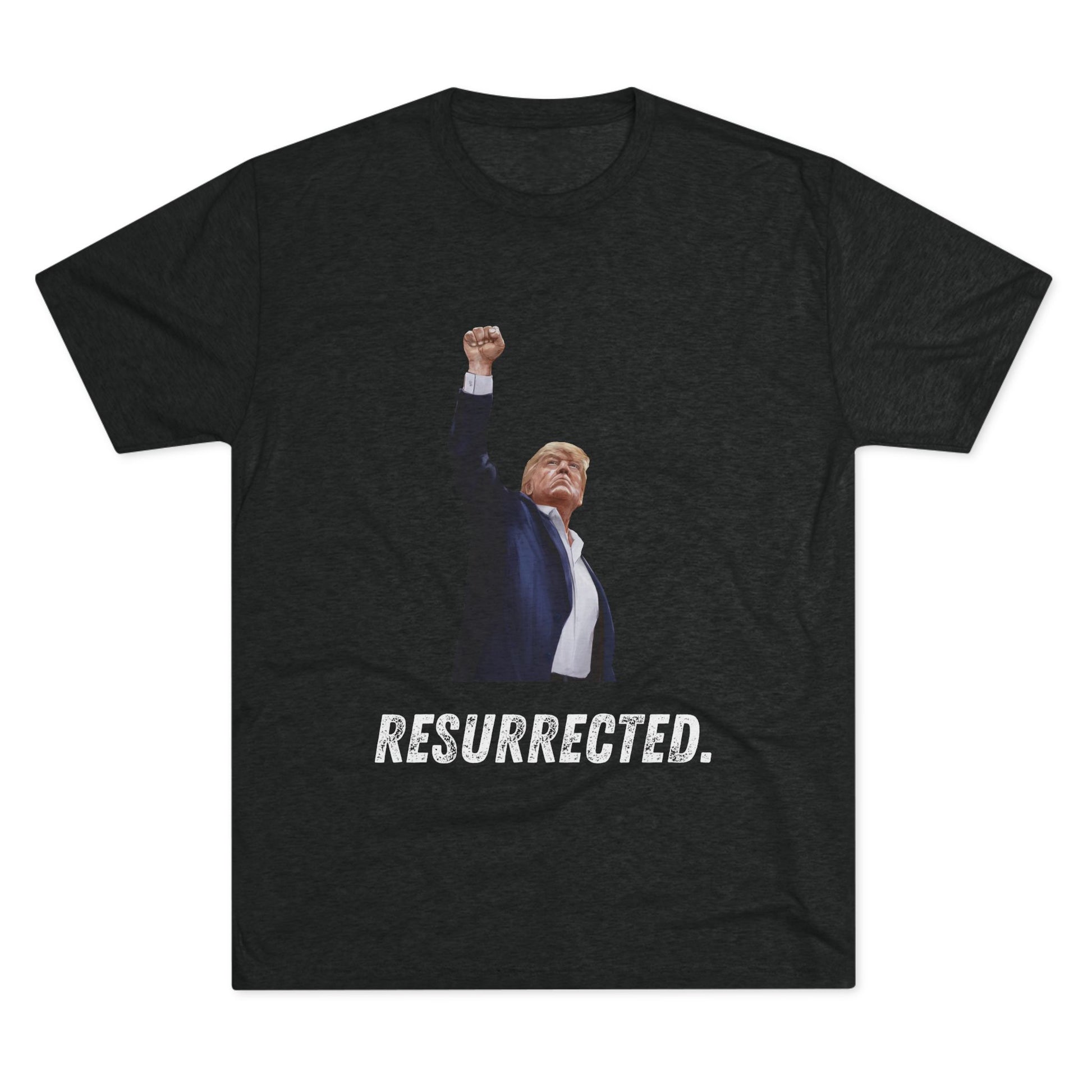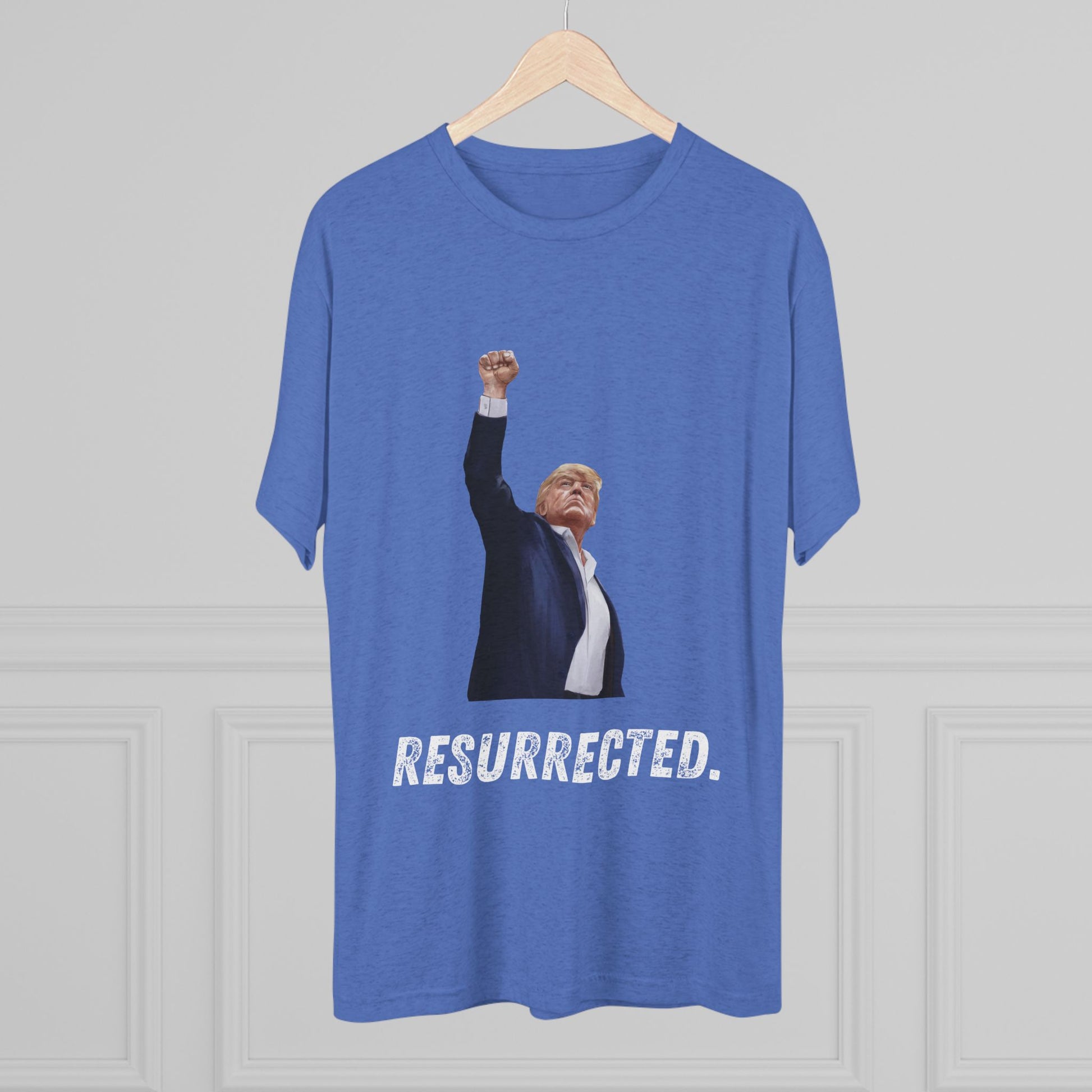 Resurrected Donald Trump Shirt, Trump Shot Shirt, Trump Assassination Shirt, Trump 2024 T-Shirt, Unisex Tri-Blend Crew Tee, President Trump