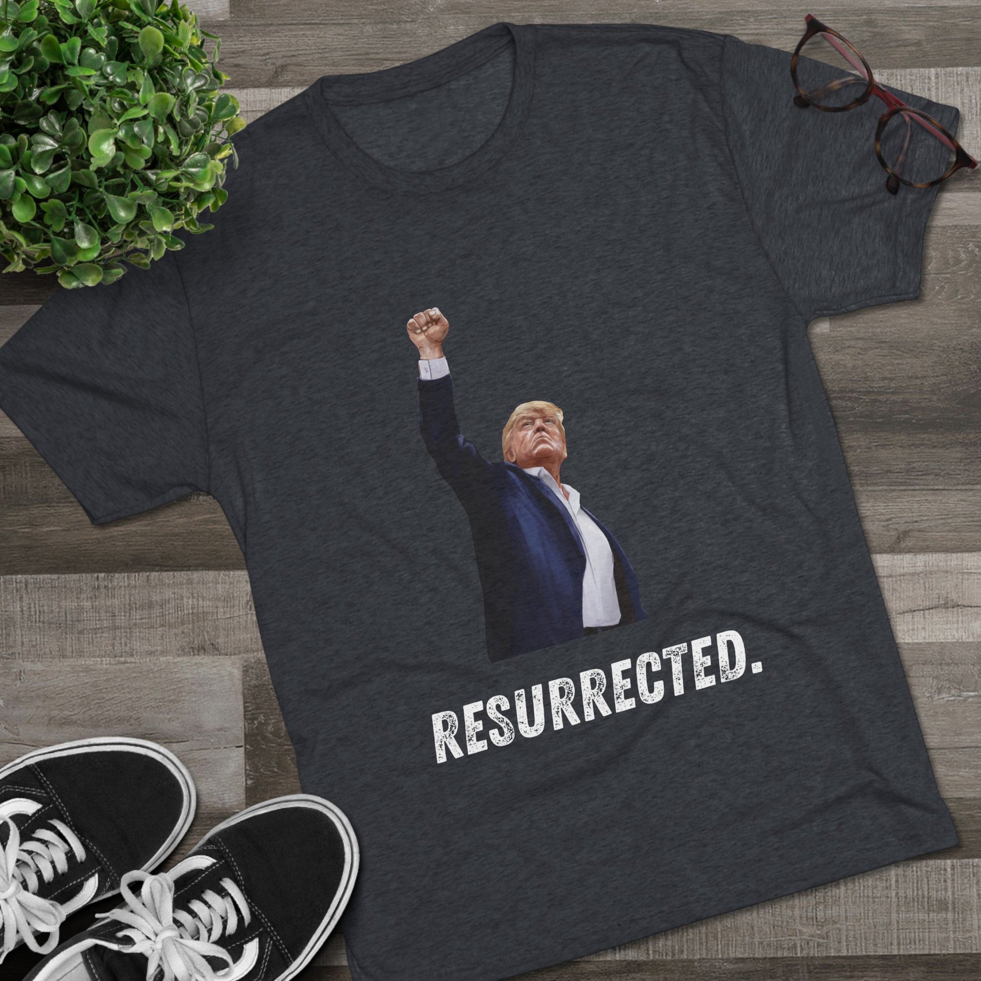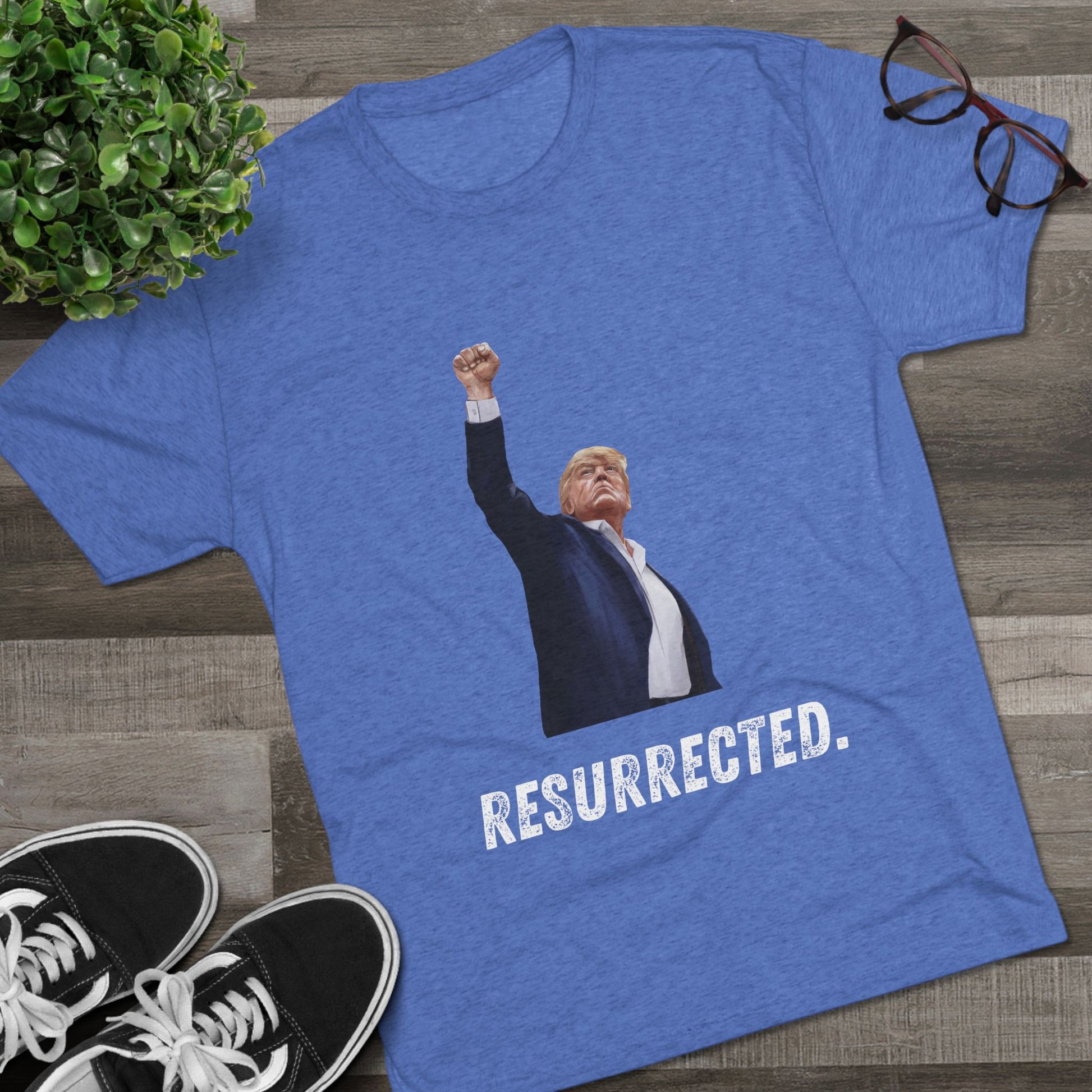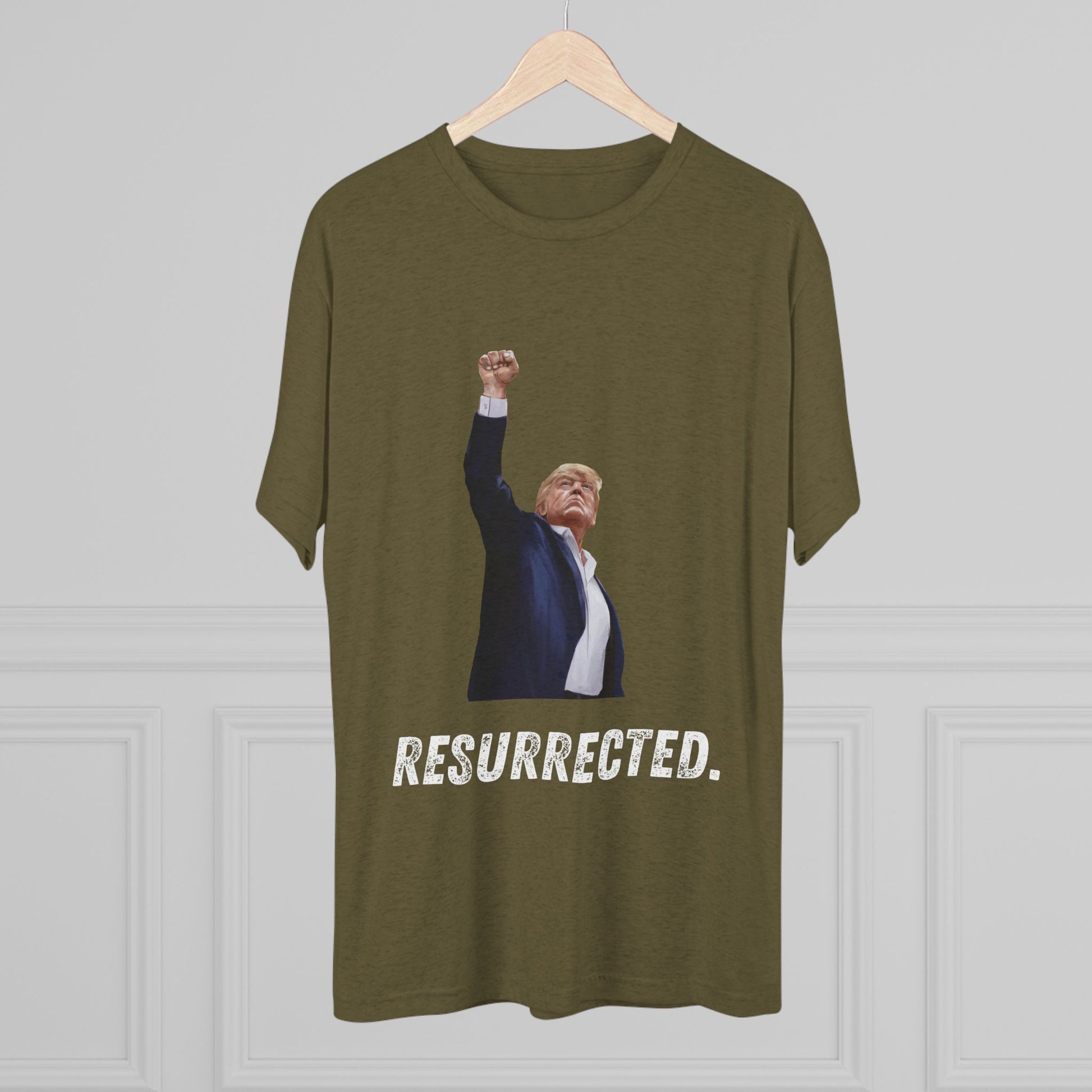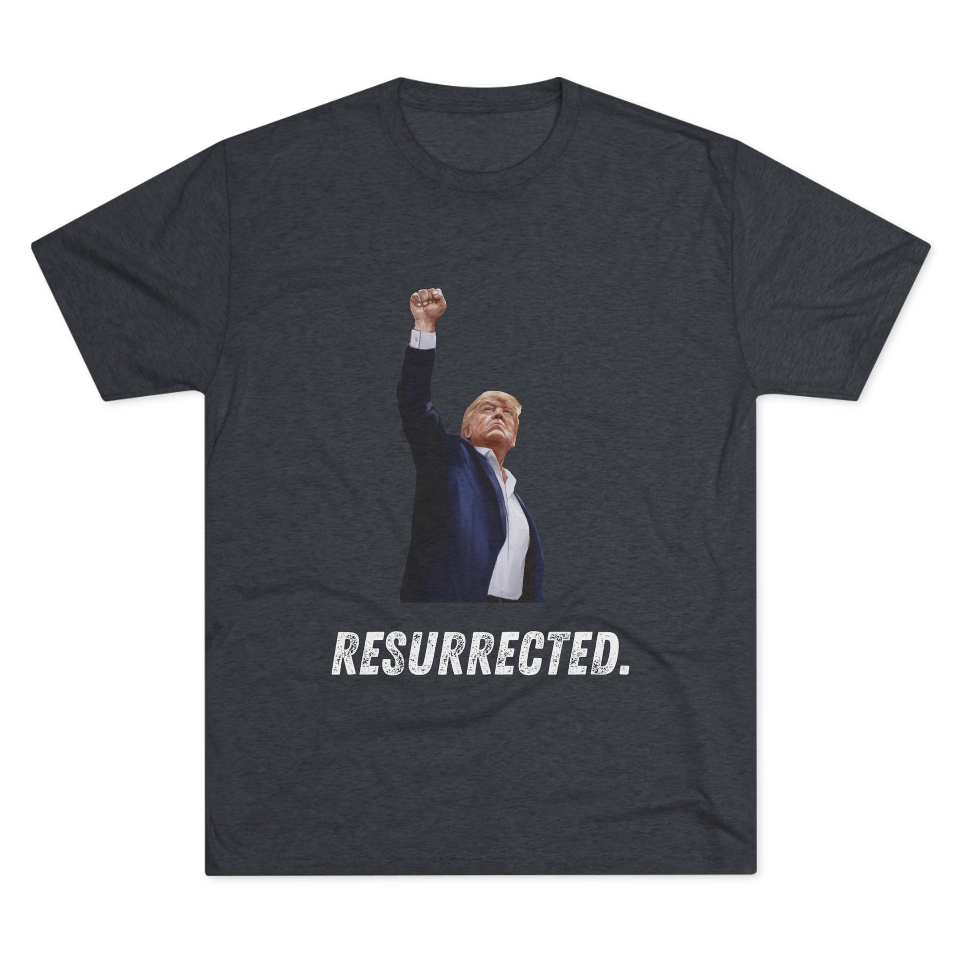 Resurrected Donald Trump Shirt, Trump Shot Shirt, Trump Assassination Shirt, Trump 2024 T-Shirt, Unisex Tri-Blend Crew Tee, President Trump