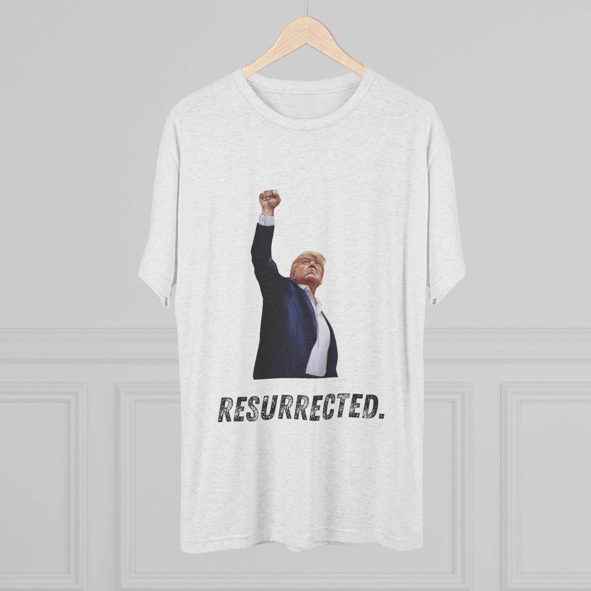 Resurrected Donald Trump Shirt, Trump Shot Shirt, Trump Assassination Shirt, Trump 2024 T-Shirt, Unisex Tri-Blend Crew Tee, President Trump