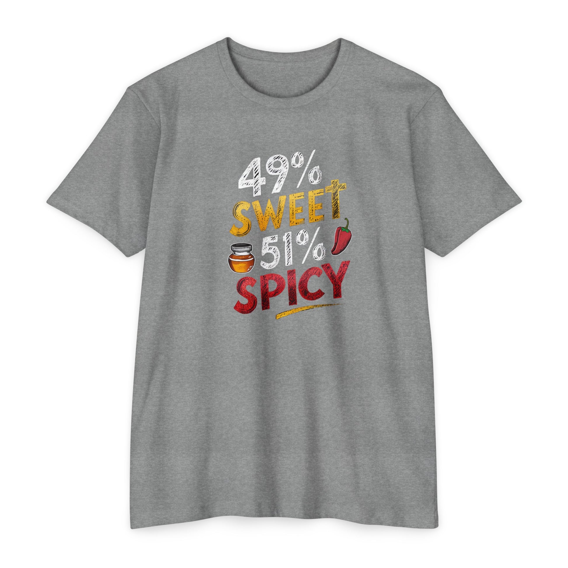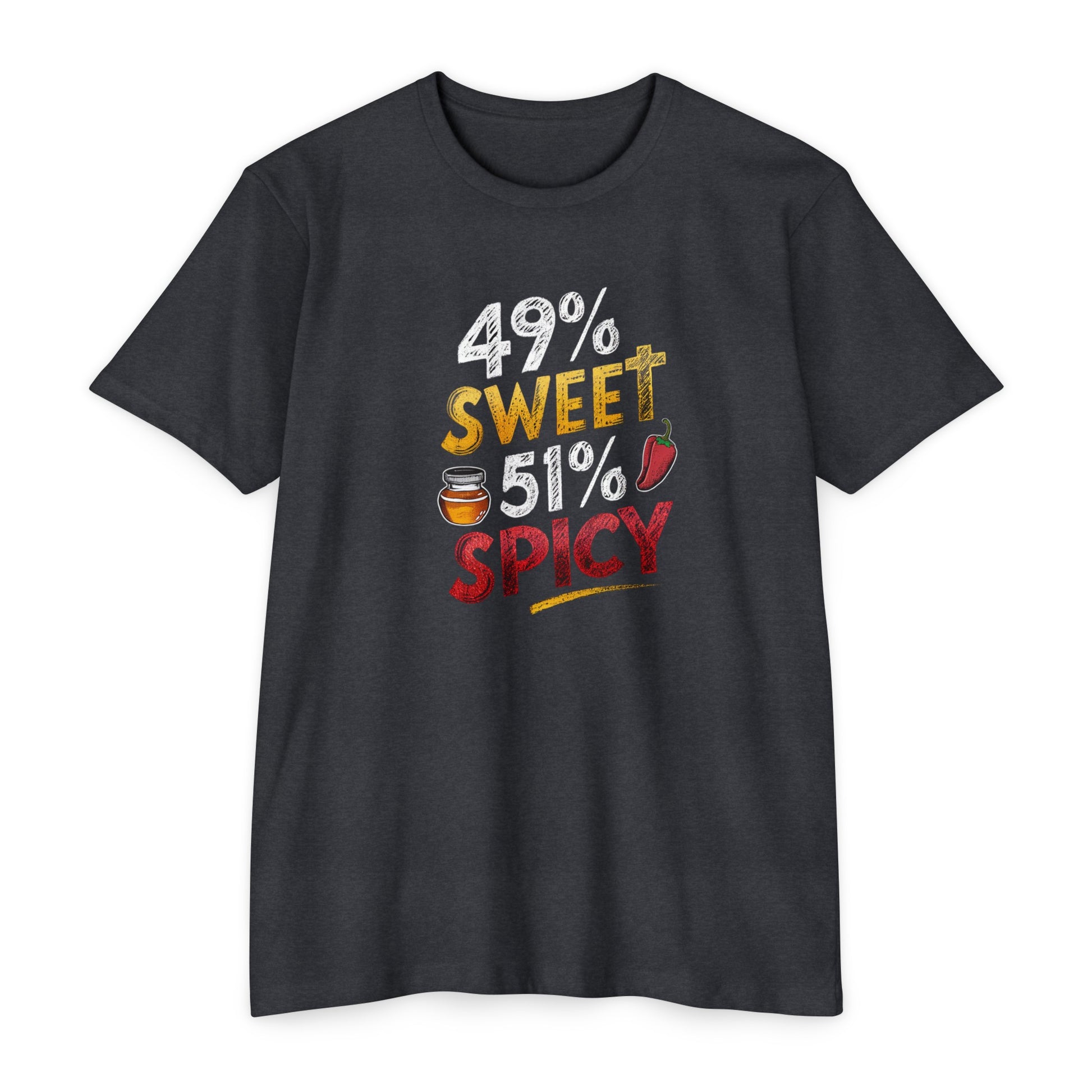 This tee isn't afraid to mix things up, just like you! Made with 49% sweetness and 51% spice, it perfectly captures your fun, fiery personality. You can be charming and chill one minute, then turn up the heat and conquer the world the next. This shirt celebrates the beautiful balance that makes you, YOU! So own your unique blend of sugar and spice and show the world what you're made of!