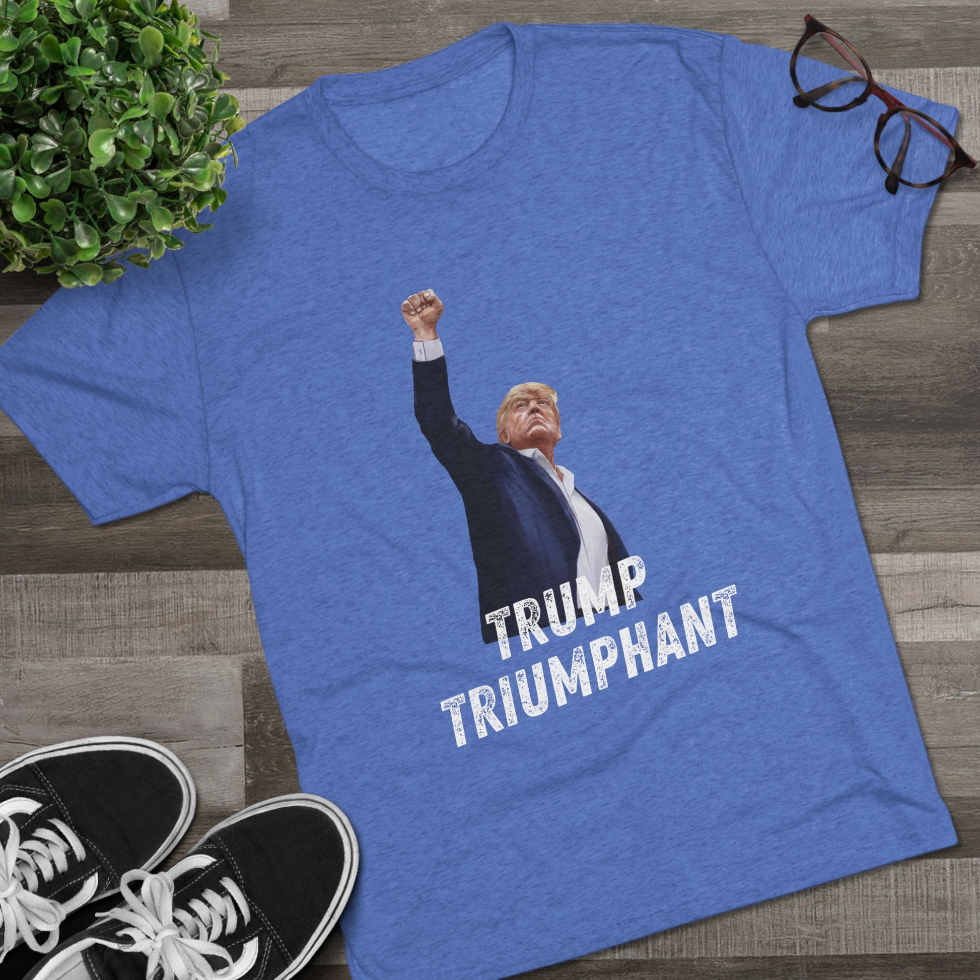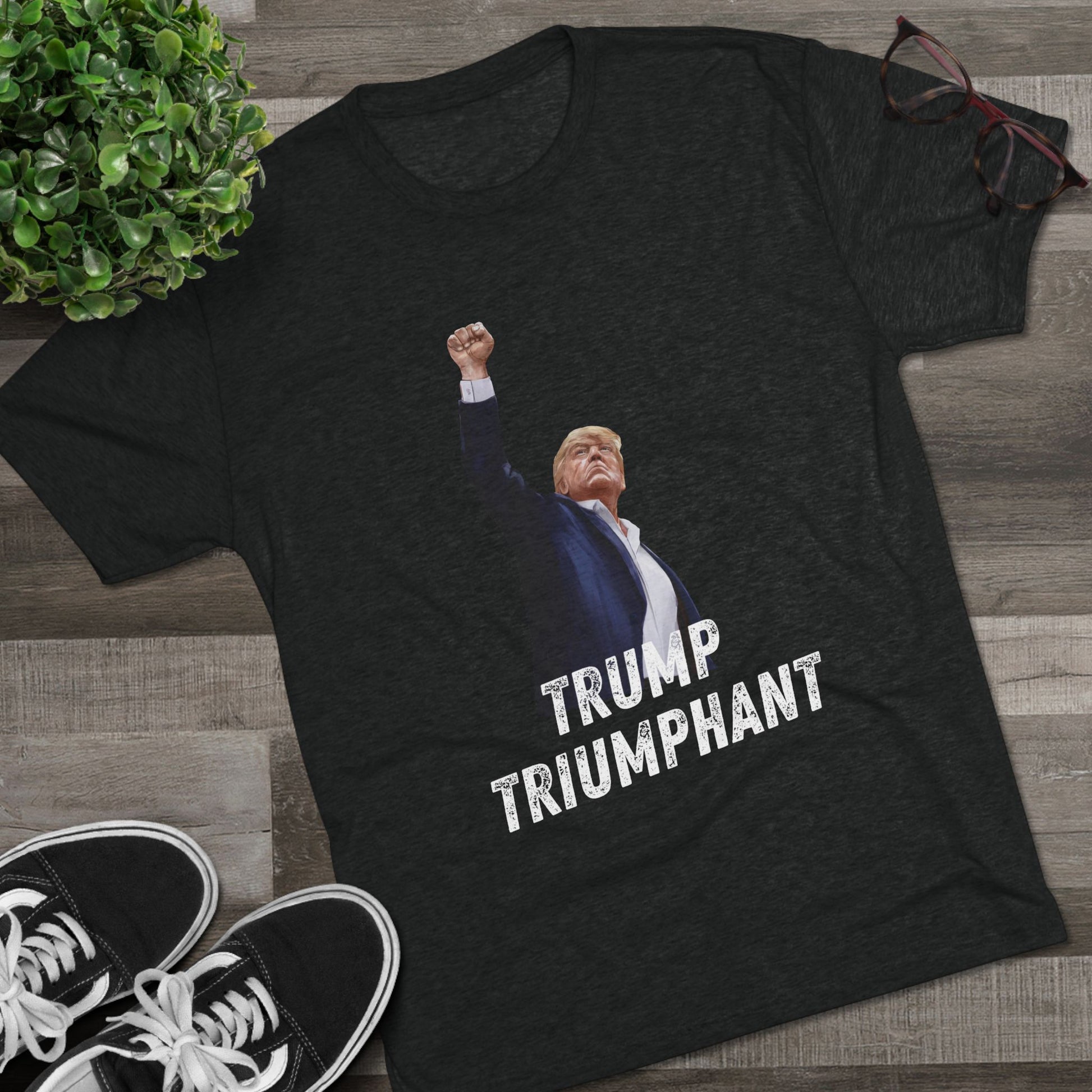 Triumphant Donald Trump Shirt, Trump Shot Shirt, Trump Assassination Shirt, Trump 2024 T-Shirt, Unisex Tri-Blend Crew Tee, President Trump