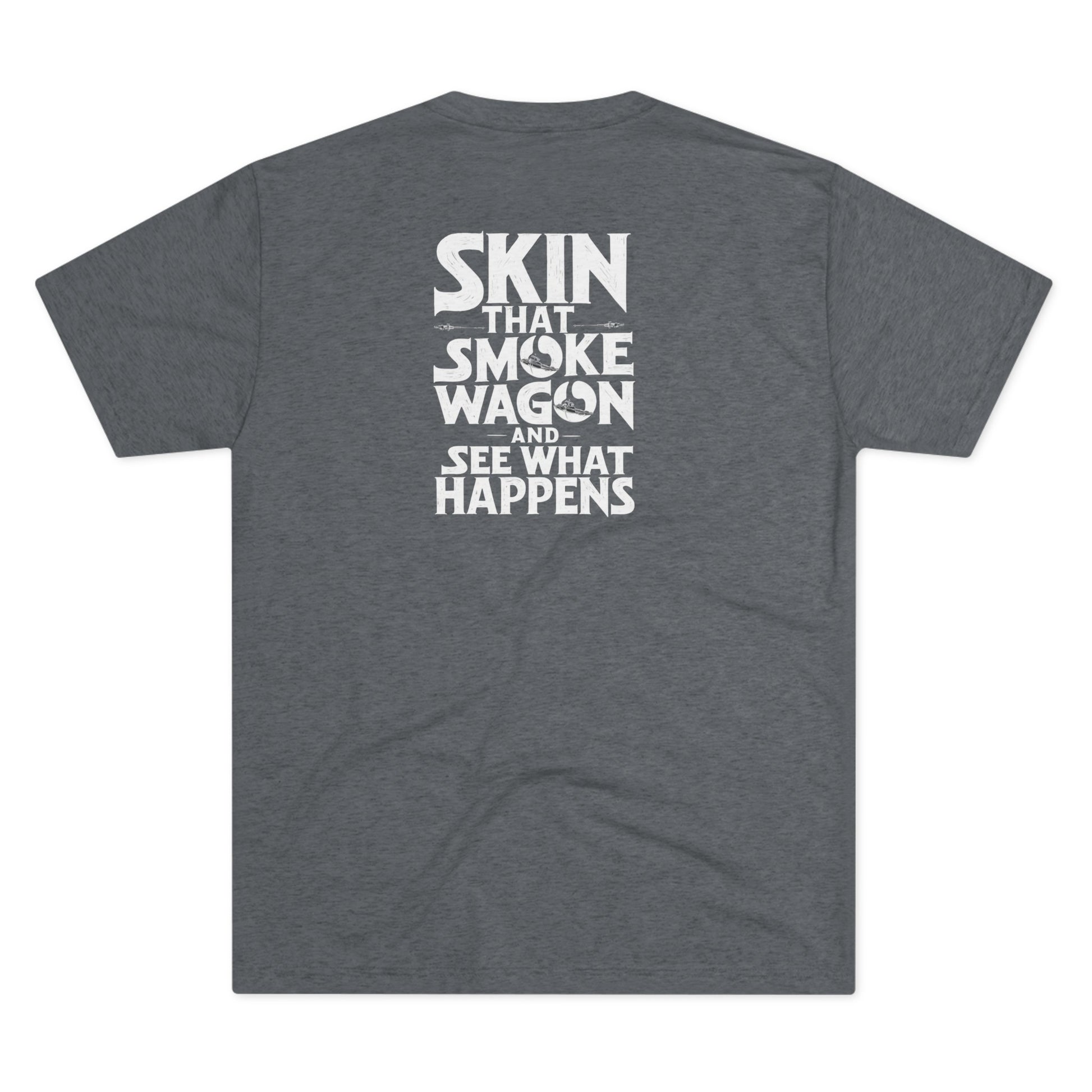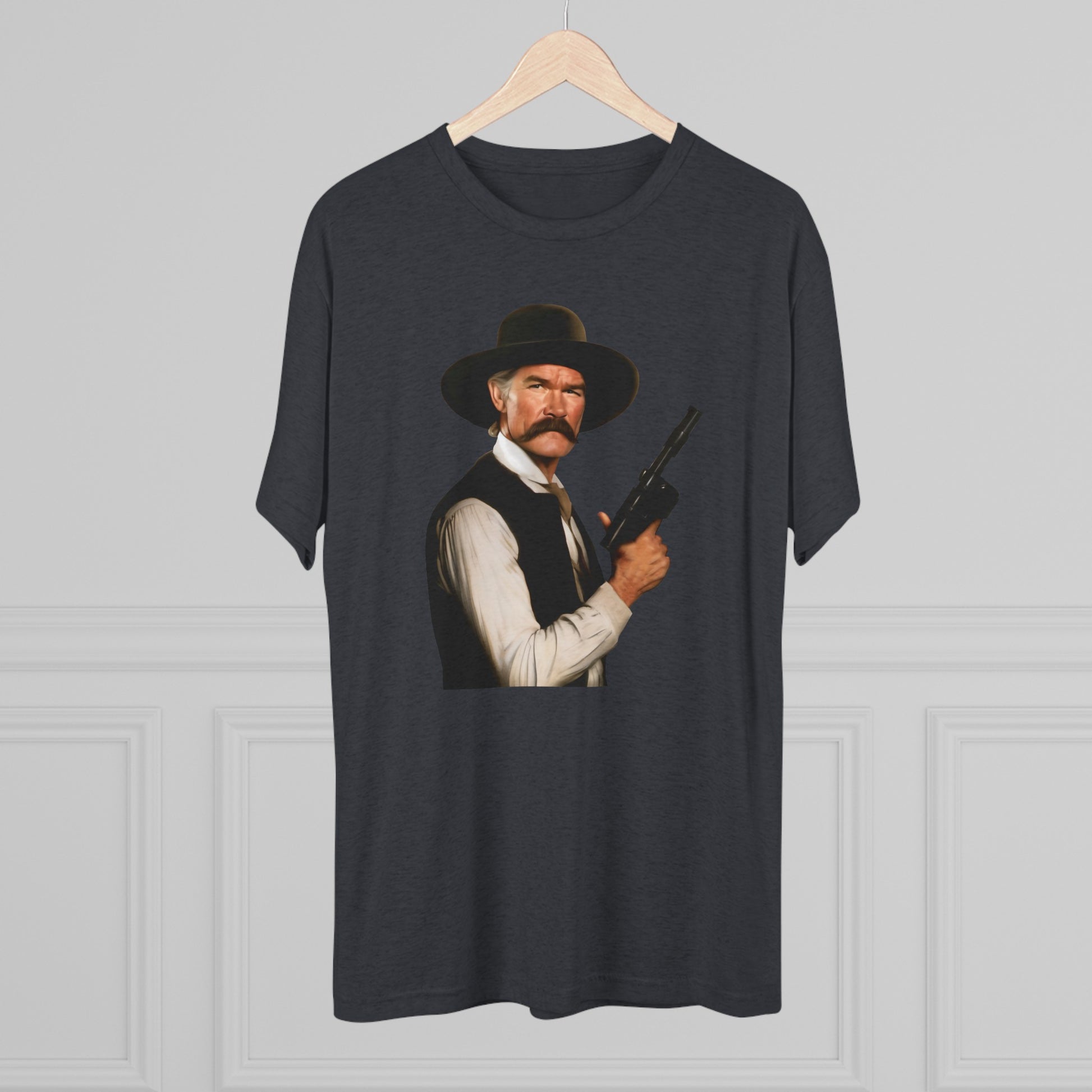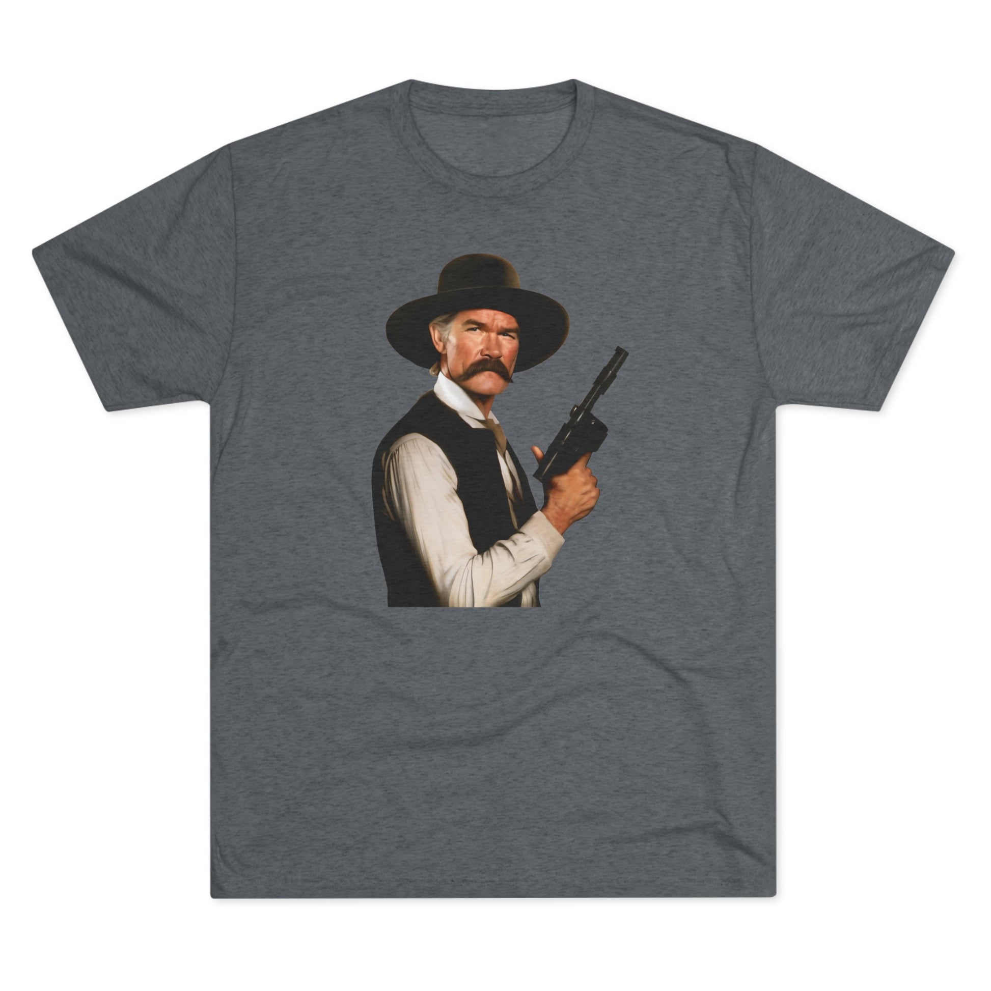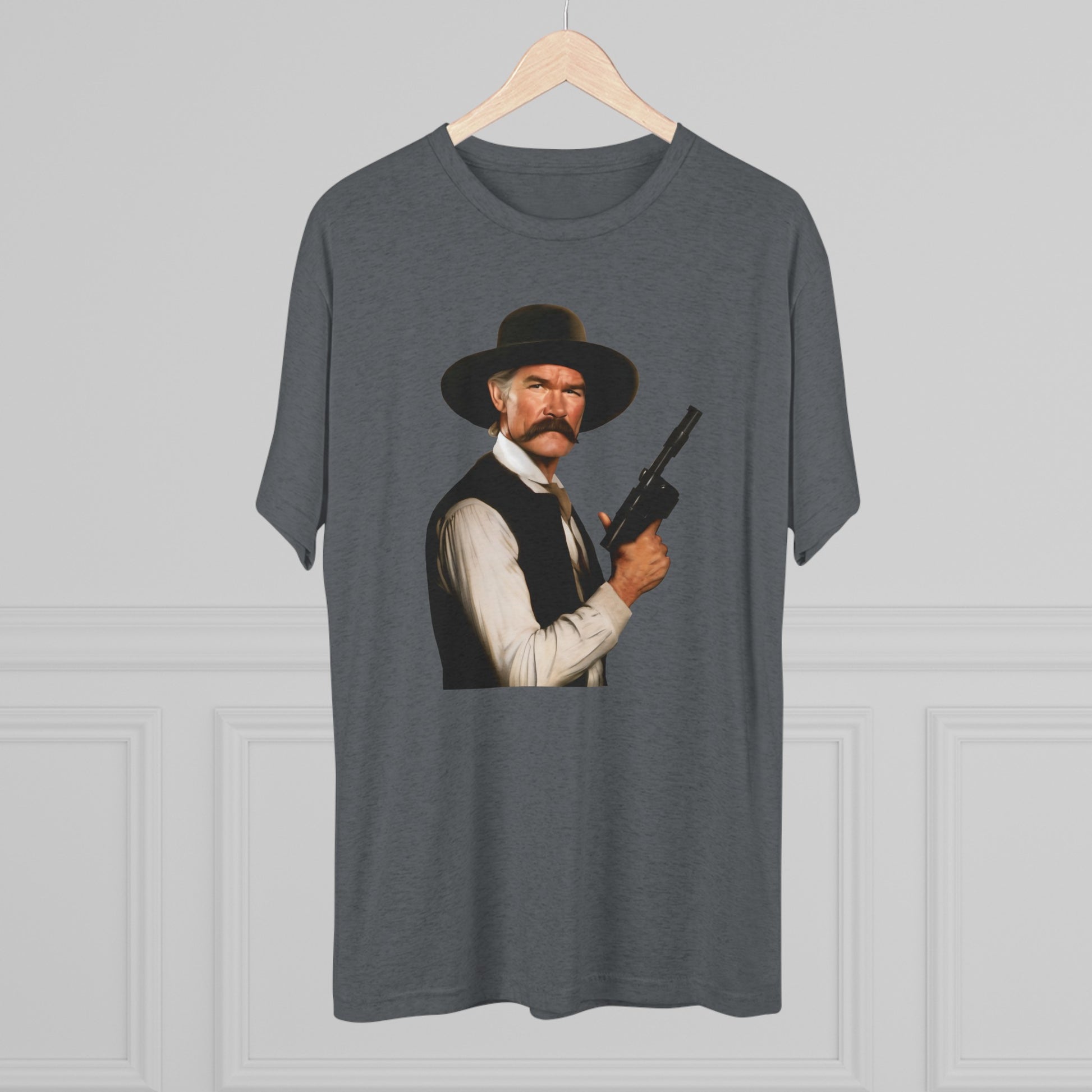 Buckle up as gunslinger legend Wyatt Earp channels his inner Han Solo, blaster in hand and ready to deal some serious space justice. "Skin that Smoke Wagon and See What Happens" – a rootin' tootin' reminder that some problems can't be solved with fancy lightsabers. (I'm lookin' at you, Jedi...) Perfect for fans of Westerns, Star Wars, or anyone who loves a good laugh, this T-shirt is a must-have for your geeky wardrobe. Whether you're heading to a Comic-Con, a Western film marathon, or just out for a casual day, this shirt will have everyone saying, "The Space Western vibe is strong with this one." This mashup is out-of-this-world hilarious, so grab this limited edition shirt and show the galaxy you ain't afraid to bend genres (and maybe a few cantina tables). May the punchlines be with you, partner! Unisex Tri-Blend Crew Tee - Next Level 6010 50% polyester, 25% combed ringspun cotton, 25% rayon Light Fabric (4.3 oz/yd² (146 g/m²) Regular fit & Sewn-in label This high quality regular fit tee has a casually elegant vibe, right? It is unbelievably soft, made with tri-blend fabric so you know it's extremely comfortable. That's right - you just found your favorite tee.